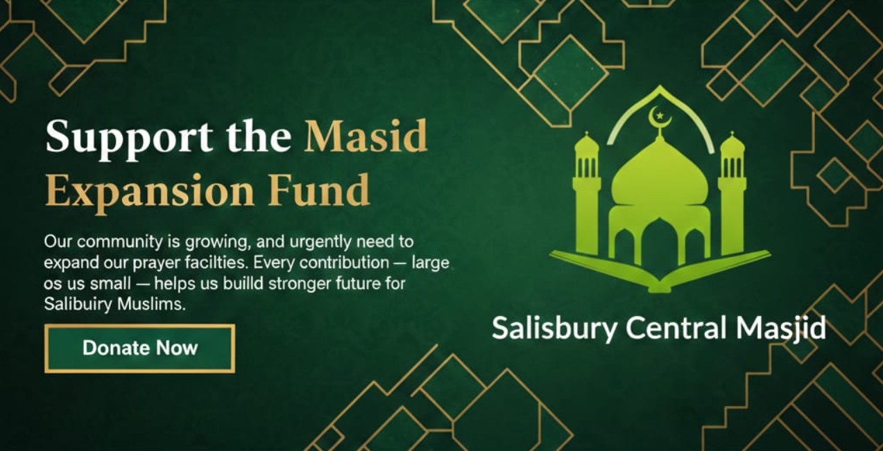 The Mosque in Salisbury is open for all of the five daily prayers. During the daytime the main prayer hall can be used for reading the Qur‘an and quiet contemplation. It can accommodate over 200 people. During busy times, such as Friday prayer, Eid prayer and the Tarawih prayers in Ramadan, an additional 50 people can be accommodated in the adjacent floor above with audio coming directly from the ground floor.